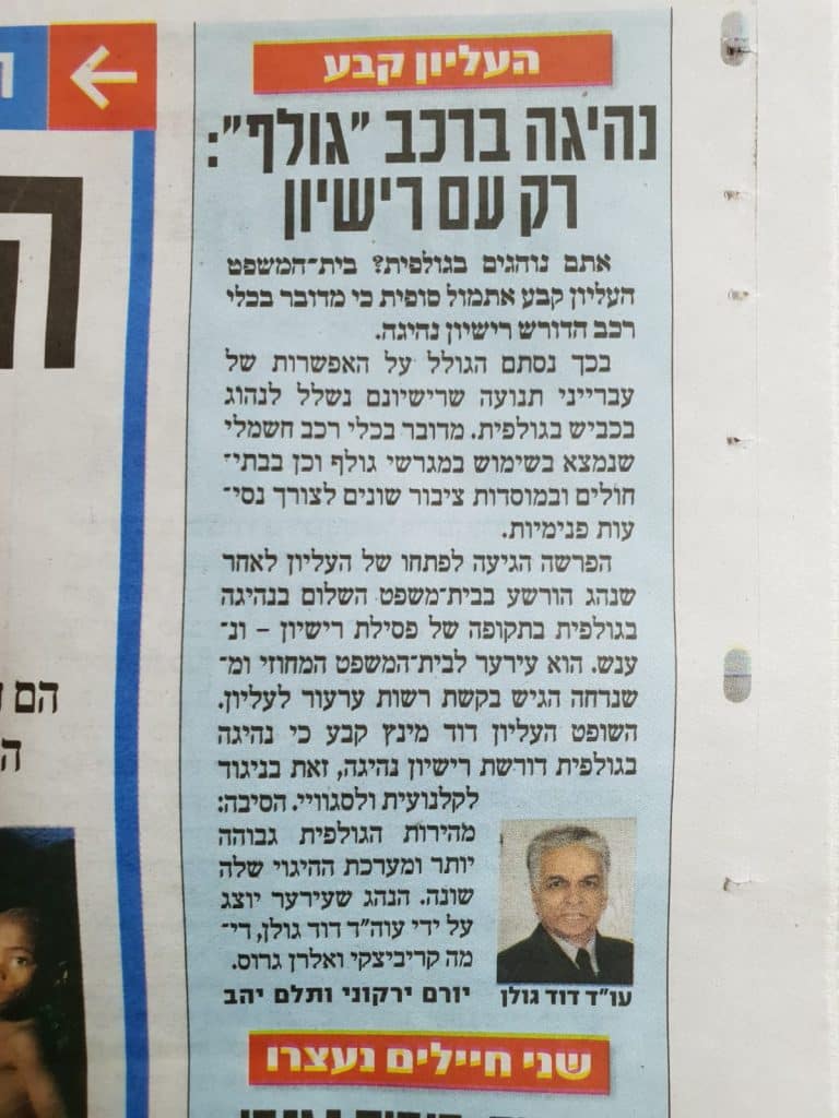 בימ"ש עליון קבע – נהיגה ברכב "גולפית" רק עם רישיון
